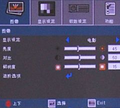 IS500仍然采用了傳統的奧圖碼風格的設置菜單,分為四個子菜單可進行橫向切換,部分子菜單中還提供了進階選項供專業用戶設置。四個子選項分別是圖像、顯示設定、初始設定和功能。