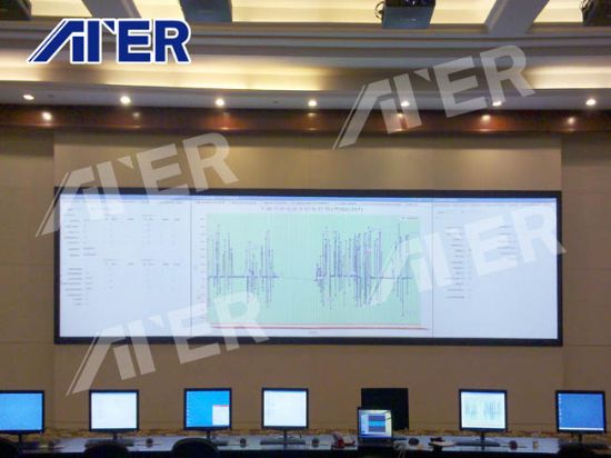 ATER通過對五洲龍監控指揮中心的實際環境勘測,設計四臺投影機大屏幕邊緣融合呈現方式,運用ATER尖端高清點對點融合技術,形成一幅9米*2米沒有縫隙、完整、明亮、寬視野、寬角度的顯示效果,圖像顯示分辨率可高達4K,可全面顯示監控過程中所需的實時數據狀態。