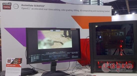 藍寶AMD FirePro W9100 擁有先進的Hawaii 核心, 2816個圖像流處理器,176個紋理單元,64個ROP光柵單元。核心頻率為930MHz, 可提供5.24TFlops單精度浮點性能、2.62TFlops雙精度浮點性能,是第一個雙精度超過2TFlops的專業卡。在AMD所推崇的OpenCL 生態下,眾多軟件商加入發掘顯示卡的強大并行計算功能, 使W9100的圖像/計算 能力得到充分施展。在剛剛結束的美國NAB 2014展中, 到處可見利用FirePro W9100 達到實時效果的4k后期制作。 請看以下圖片介紹: