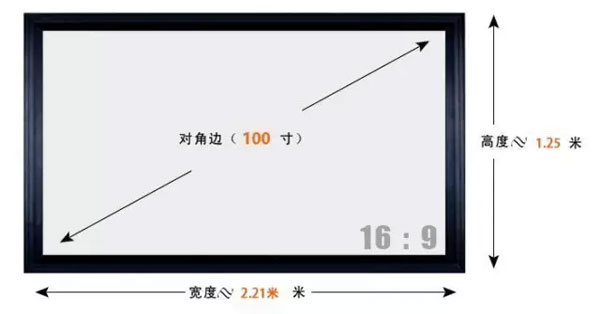 100寸投影畫面的屏幕尺寸