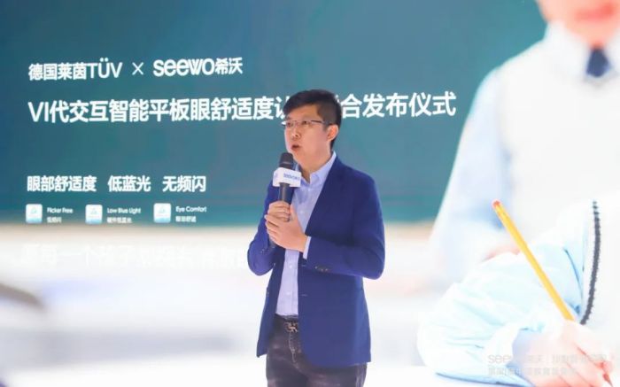 德國萊茵TÜV大中華區電子電器產品服務副總裁楊佳劼在致辭中提到,希沃新一代交互智能產品所擁有的護眼顯示技術,達到了全球先進的健康和安全要求,將行業內智慧大屏的護眼程度提升到了一個新標準,期待今后能攜手并行,打造更多健康應用。
