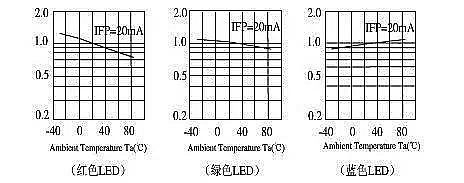 激光屏實時調節光機光源輸出亮度,整墻亮色一致性可以得到很好的保證,亮色調整相對簡易;而LED顯示技術中,每個像素都由紅綠藍三個LED管芯組成,R(紅)、G(綠)、B(藍)三色LED管芯亮度與溫度的關系如下: