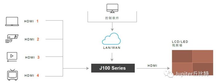 當(dāng)前顯控領(lǐng)域中處理器系統(tǒng)主要包含云視頻管控平臺(tái)、分布式處理器系統(tǒng)、X86架構(gòu)集中式處理器和純硬件架構(gòu)的集中式處理器四類。Jupiter在過(guò)去40年里陸續(xù)發(fā)布并持續(xù)升級(jí)的Canvas、PixelNet和Catalyst產(chǎn)品囊括了前三類。Jupiter全新推出J系列純硬件處理器實(shí)現(xiàn)了全品類覆蓋,可更有效的滿足不同行業(yè)、不同客戶、不同場(chǎng)景的不同應(yīng)用需求。