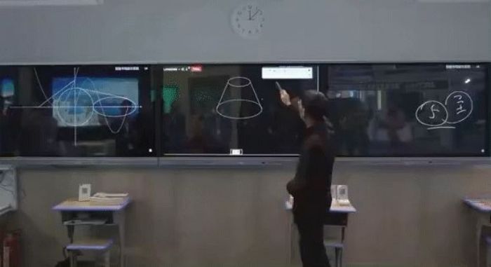 較于傳統(tǒng)課堂授課,方案取代了傳統(tǒng)書(shū)寫(xiě)黑板,通過(guò)交互智能平板的拼接組合,打開(kāi)更多教學(xué)方式。每塊屏幕在支持播放Word、PDF、PPT、視頻等資源的基礎(chǔ)上,還可以將不同種類的資源在三塊屏幕上同時(shí)展現(xiàn),在想講解的重點(diǎn)處直接進(jìn)行批注。