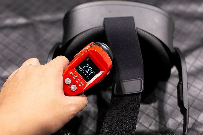 在佩戴體驗過程中,VIVE Focus 3運行一段時間后會將冷空氣吹進鏡腔內部,可有效緩解鏡腔內部的悶熱感。使用兩小時之后鏡腔內部溫度在30°左右,鏡片在測試過程中也未出現過起霧情況。