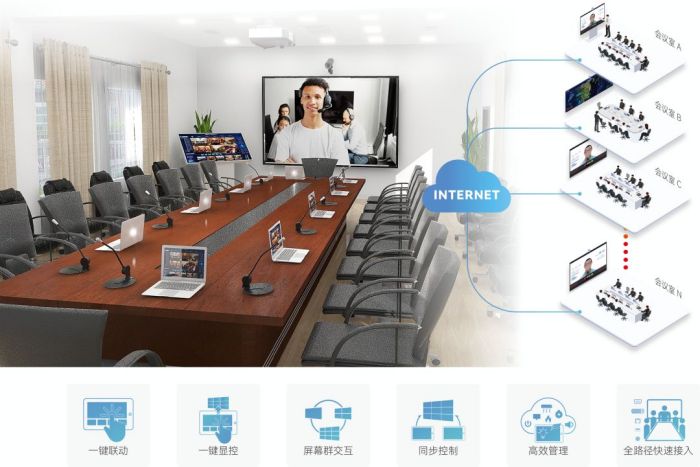 輕松實(shí)現(xiàn)多樓層、多會(huì)議室之間的音視頻傳輸交互顯示,跨區(qū)域一鍵同屏。并且可設(shè)置權(quán)限,各會(huì)議室僅可獨(dú)立控制本地設(shè)備,管理員擁有總控權(quán)限,使用一個(gè)平板即可掌控整棟大樓。