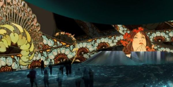 慕夏的作品以大型 3D動畫投影展示,使他的畫作栩栩如生。