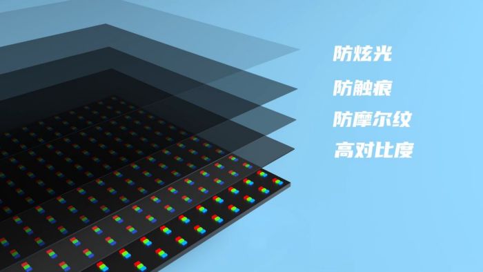 此外,中麒的全新表面處理工藝還針對顯示效果做了一系列光學處理改進——實現(xiàn)了高對比度、防摩爾紋、防觸痕、防眩光等效果,極大地提升了視覺體驗。