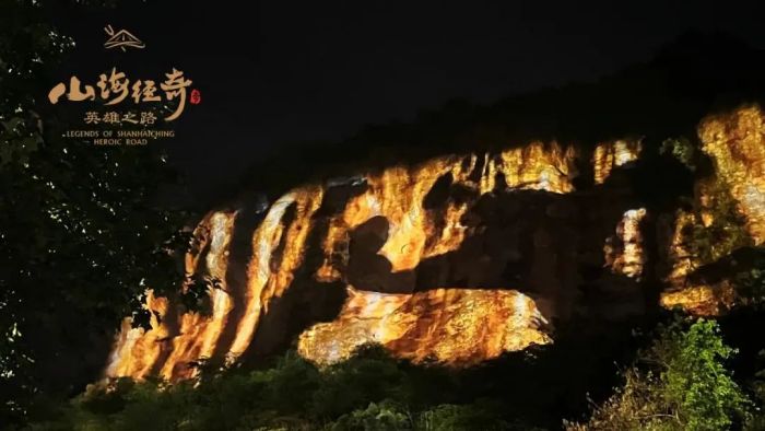 位于浙江紹興十九峰景區(qū)內(nèi)的《山海經(jīng)奇 英雄之路》沉浸式夜游,是與央視IP《山海經(jīng)奇》紀錄片聯(lián)合打造的項目,這場夢幻的光影奇旅,借助新技術(shù)、新媒介把遙遠的上古神話鋪展到人們眼前,一步一山海,一夜一千年,用美輪美奐的光影喚起人們的想象力。