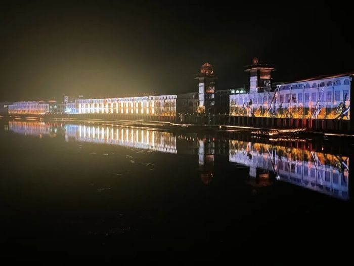 本項(xiàng)目的最大亮點(diǎn),在于挑戰(zhàn)寬畫(huà)幅新極限——3D Mapping主體建筑,投影總長(zhǎng)度近500米,可視光影畫(huà)幅總面積達(dá)12000平方米,開(kāi)創(chuàng)國(guó)內(nèi)光影演藝先河。不僅全景重現(xiàn)古城悠悠歷史,更創(chuàng)造出水岸聯(lián)動(dòng),靈活多變的多業(yè)態(tài)延展空間。