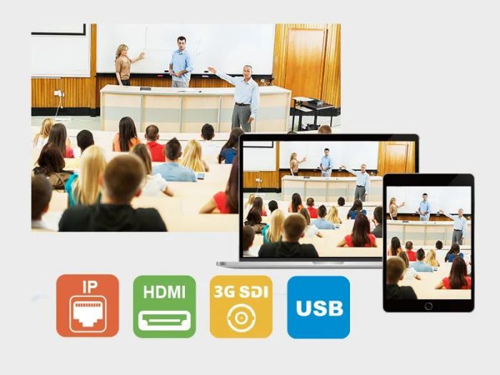 透過IP、HDMI、USB及3G-SDI接口,同時輸出高畫質影像