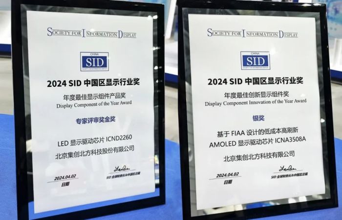 在本次大會中,集創(chuàng)北方LED顯示驅動芯片ICND2260與AMOLED顯示驅動芯片ICNA3508A分別獲得“年度最佳顯示組件產(chǎn)品獎”專家評審獎金獎和“年度最佳創(chuàng)新顯示組件獎”銀獎。與此同時,由SID北京分會牽頭,集創(chuàng)北方OLED團隊參編的顯示技術FTS OLED年度技術報告在大會上重磅發(fā)布。
