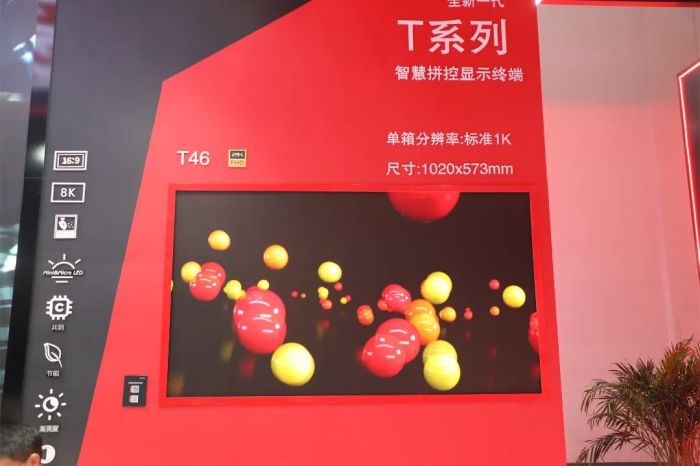 本次展會,T系列繼續引領“旗艦”風潮,以其“二層三通四部件五標準”顛覆式創新,特有1K/2K獨立顯示、低亮高灰、7680Hz高刷新率、支持144Hz換幀頻率、兼容HDR 10+標準、170°+廣視角,擁有18bit灰階顯示能力,28mm超薄設計等優勢,展現出一款完成全面進化的LED直顯獨立顯示產品風采。