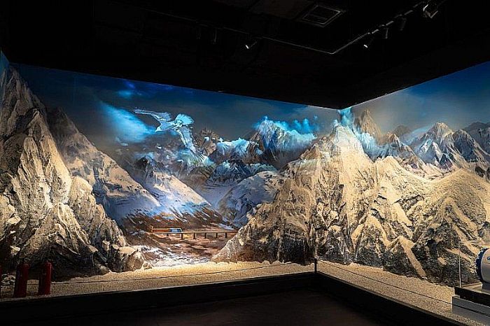 此外,展廳還將一臺RU5500UST和一臺理光RU7700L結合,在山體模型上生動呈現了當時全國最長的隧道——沙木拉達隧道。