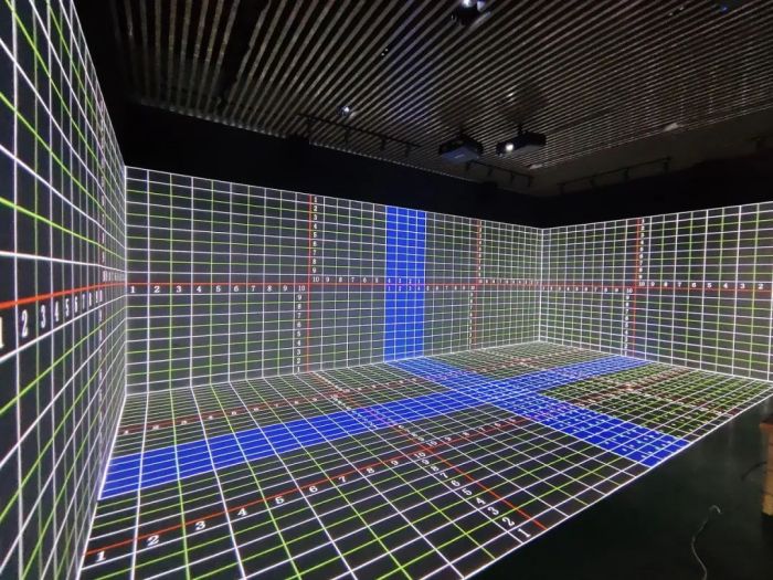 視美樂采用多臺高亮工程P系列投影機投射于異形地面,再通過畫面融合,使投影完美貼合到異形表面上,鮮活生動地展示了彭水縣地質氣候與特色農業。隱藏式設備安裝,也使得展廳整體效果更加美觀、大氣。
