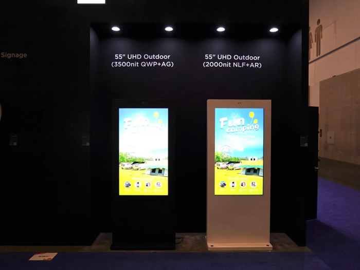 55寸戶外廣告機使用BOE自研NLF技術,高效利用環境光,有效降低產品功耗,契合綠色低碳理念。86英寸條形屏、43英寸菜單屏等多款智慧零售顯示終端,憑借低功耗長待機的性能特點引領綠色低碳新風向。