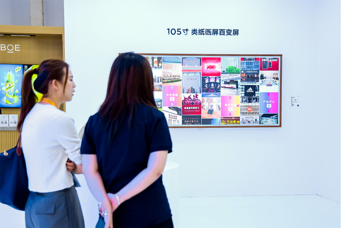 云畫屏類紙顯示產品憑借強互動、數字化的表達方式,在文化展陳展區(qū)中大放異彩,深受參觀者喜愛。其中,多尺寸類紙畫屏墻通過多屏聯動軟件,能輕松實現單一場景多主題快速切換;105吋5K超高清百變屏則搭載先進系統(tǒng),擁有分區(qū)互動、視頻播放、多點觸控等功能,讓用戶有了前所未有的數字化新體驗。此外,創(chuàng)意顯示系列產品如方屏、圓屏等,則能滿足不同展陳空間的展示需求。