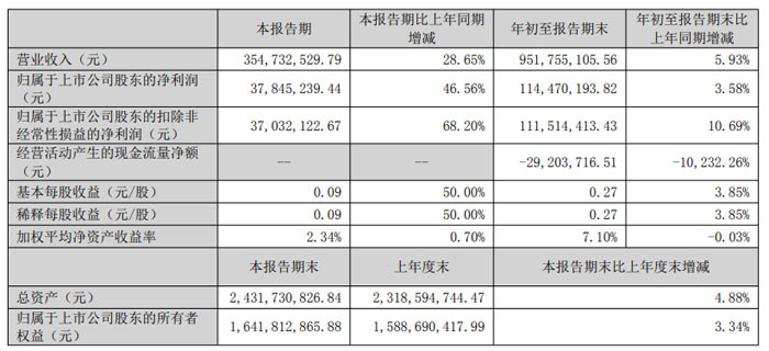 核心財(cái)務(wù)數(shù)據(jù)亮眼:三季度凈利同比增幅超 46%