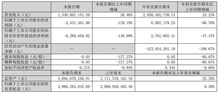 從年初至報告期末(2025 年 1-9 月),公司累計營收達 28.50 億元,同比增長 24.23%,持續保持兩位數增長;歸屬于上市公司股東的凈利潤 698.22 萬元,同比下降 66.76%;扣非后凈利潤 578.17 萬元,同比下降 47.47%。同期,非經常性損益貢獻 120.05 萬元,主要來自政府補助(204.35 萬元)及金融資產公允價值變動與處置損益(385.27 萬元)。