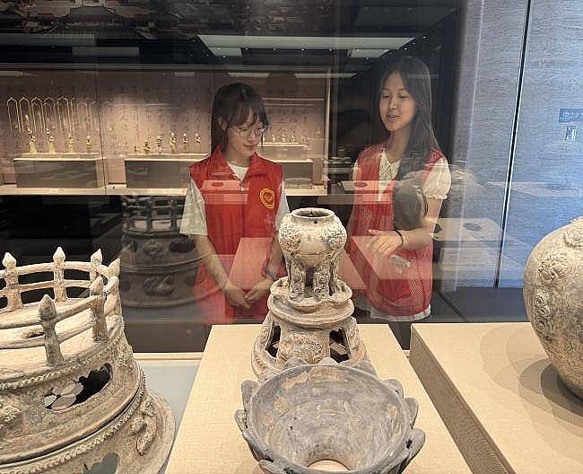 在志愿服務前,實踐隊員自發深入展廳進行細致參觀,探尋太原悠久的歷史脈絡。隨后,志愿者們迅速進入工作狀態,圍繞館內的珍貴文物與“數字化、智能化”文物展示設備,深入探索其背后文物背景和運行程序。從硬件搭建邏輯到軟件編程原理,不放過任何一個細節。在探索過程中,將設備展示的內容與文物實體進行對照,深入挖掘兩者之間的關聯,思考如何通過這些現代設備更好地解讀文物背景。這為后續更好服務觀眾,讓觀眾通過多元方式了解文物奠定了堅實的基礎。